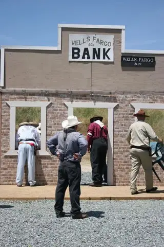 Diamond Dick’s Cowboy Town is a dedicated Cowboy Action Shooting venue built around simulated 1800s-era town storefronts. Five 25-yard bays are staged with period props and backdrops, and shooters compete in traditional firearms and period attire on stages that reward speed, accuracy, and a bit of showmanship.